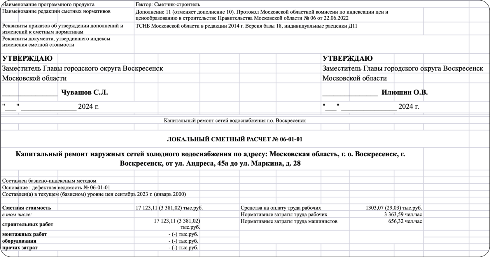 Выполнение работ по капитальному ремонту сетей водоснабжения, г.о. Воскресенск